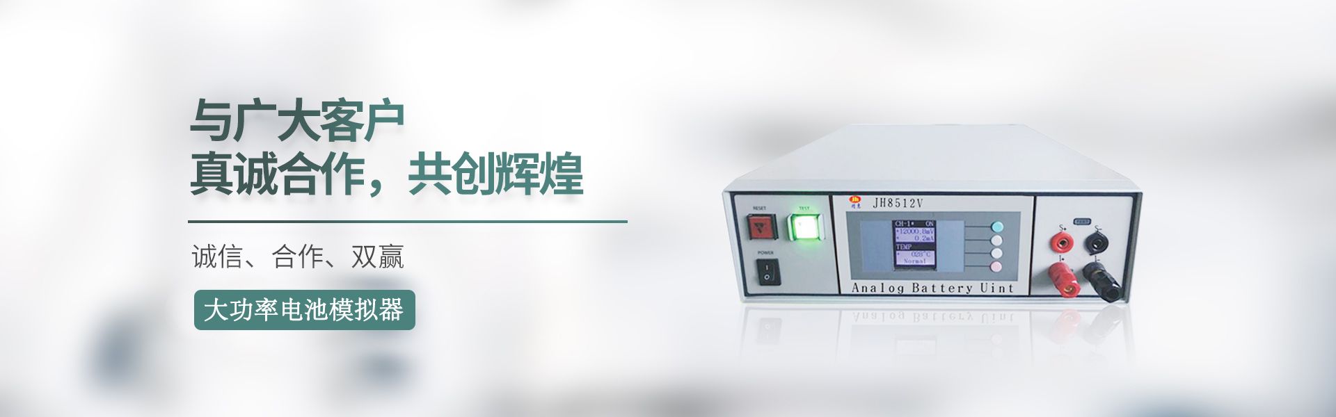 惠州精惠儀器設備有限公司自主研發的電池充放電(能量回饋型)測試系統(5V低壓電芯系列、10V—120V中壓電池組系列、150V---1000V高壓電池包PACK系列)、 BMS 電池管理測試系統(平臺)(JH9800 系列)、模擬(虛擬)電池單元(JH8500系列),為鋰電芯及電池包(PACK)提供真實的模擬試驗環境及完善的檢測手段,經過客戶的反復使用,得到了市場的廣泛認可,為廣大的鋰電池生產廠家、檢測機構、大(中)院校提供完善的測試解決方案。